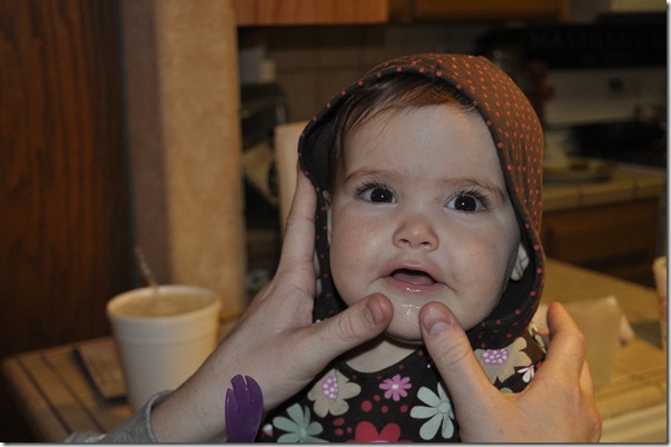 Some CUUUUUTE pics of Kylee. I could just eat her up :-) We “tortured” her a bit to get a pic of her first two teeth (sorry mom :-)