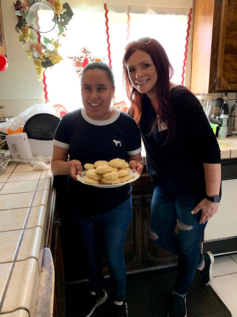 I had a cooking lesson with my totally blind student Laura. She made her favorite cookies